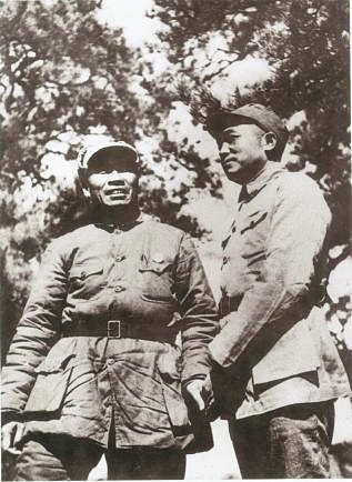 圖7 八路軍總司令朱德(左)、副總司令彭德懷(右)在山西武鄉(xiāng)縣八路軍總部駐地。