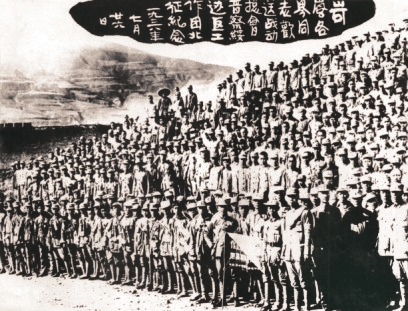 圖5 從1937年9月成立到1938年,戰(zhàn)動總會先后在第二戰(zhàn)區(qū)內(nèi)組建了17個游擊支隊,另有山西工人武裝自衛(wèi)旅(簡稱工衛(wèi)旅)、察綏游擊軍、1個政治保衛(wèi)隊、2個地方游擊隊,還有戰(zhàn)區(qū)各縣游擊隊、自衛(wèi)隊等。圖為1942年10月工衛(wèi)旅在興縣舉行成立5周年紀(jì)念大會后,司令部與政治部全體干部合影。