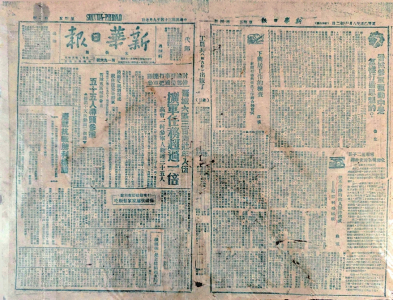 1945年9月7日,中共太岳區(qū)委機(jī)關(guān)報(bào)《新華日?qǐng)?bào)》(太岳版)在第三版全文登出了日本投降的原文,還將一版、四版內(nèi)容用少見(jiàn)的藍(lán)色油墨印刷,以顯示其具有特殊的紀(jì)念意義。王海勇藏