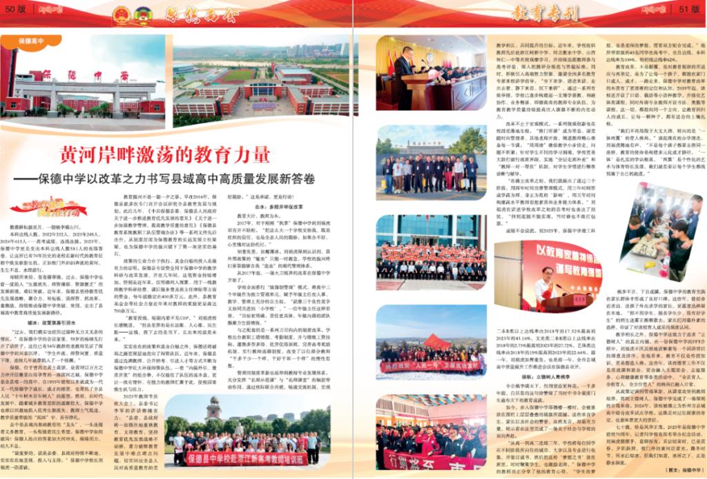 從政策定調(diào)到管理革新,從課堂攻堅(jiān)到教師培養(yǎng),再到立德樹(shù)人,保德中學(xué)完成了一場(chǎng)深刻的自我革命。2024年,該校被確立為忻州市縣域高中綜合改革試點(diǎn)學(xué)校。這既是對(duì)過(guò)往探索的肯定,也意味著更大的責(zé)任。